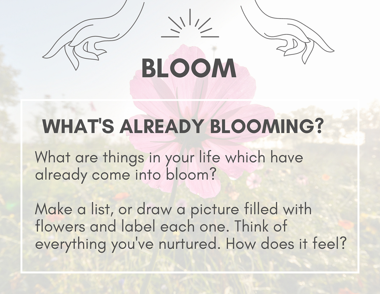 And, it’s the perfect time to think about what’s blooming. Not what you want, but the seeds you’ve sown in your life one, two, five years ago: the things in your life which have already come to fruition.